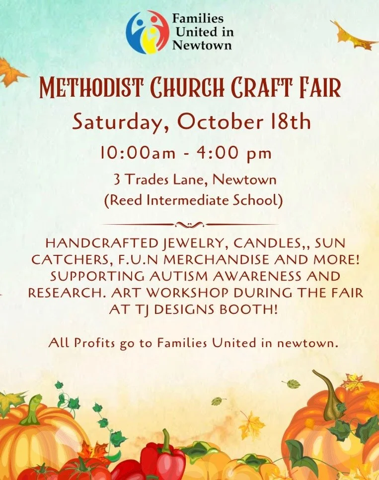 Craft Fair and Art Workshop Saturday, October 18, 2025 10:00 AM 4:00 PM 10:00 16:00 Reed Intermediate School 3 Trades Ln Newtown, CT, 06470 United States (map) Google Calendar ICS